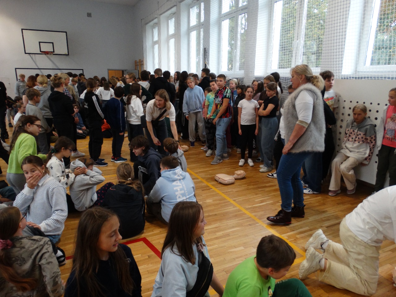 Kolejny raz uczniowie i nauczyciele naszej szkoły wzięli udział w BICIU REKORDU w PIERWSZEJ POMOCY. Przez 30 minut, nieprzerwanie, prowadziliśmy RKO na 7 fantomach. Było gorąco, radośnie i emocjonująco. Maluszki też dały radę :).