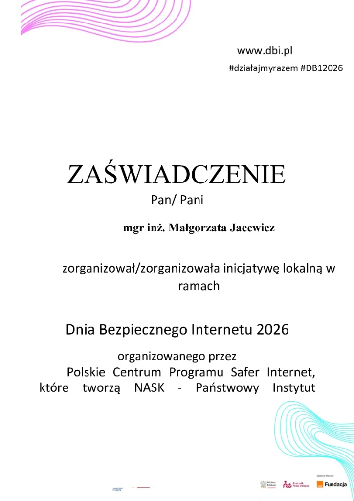 10 lutego 2026 r. obchodziliśmy Dzień Bezpiecznego Internetu. Z tej okazji w naszej szkole przez cały tydzień podejmowane były działania mające na celu zwiększenie świadomości uczniów na temat zagrożeń występujących w sieci oraz zasad bezpiecznego korzystania z Internetu.