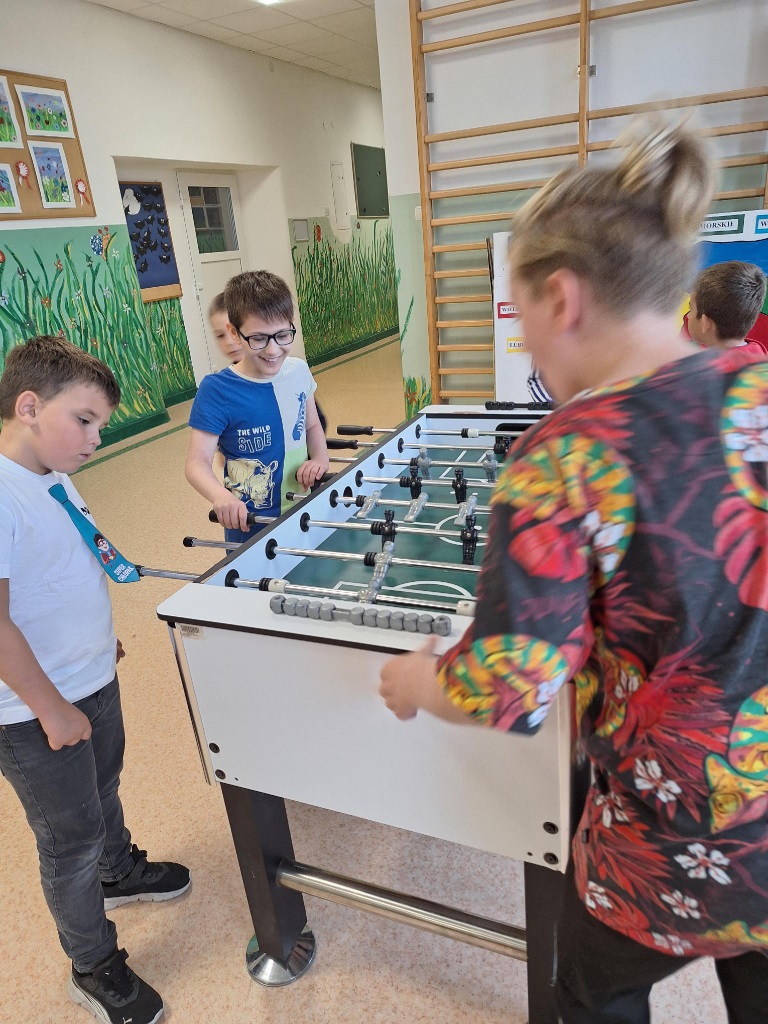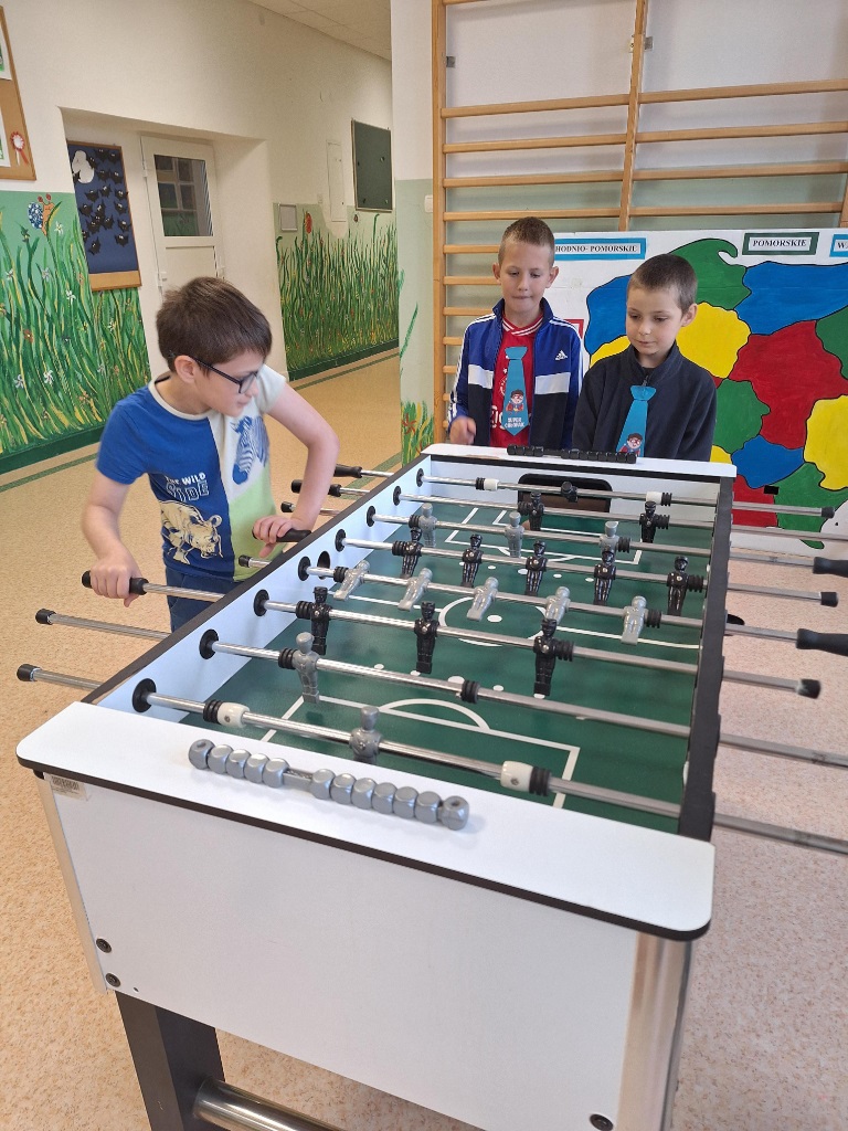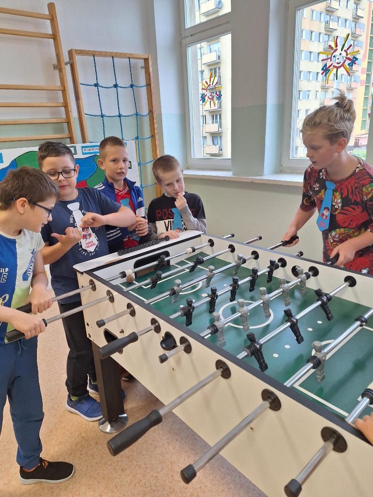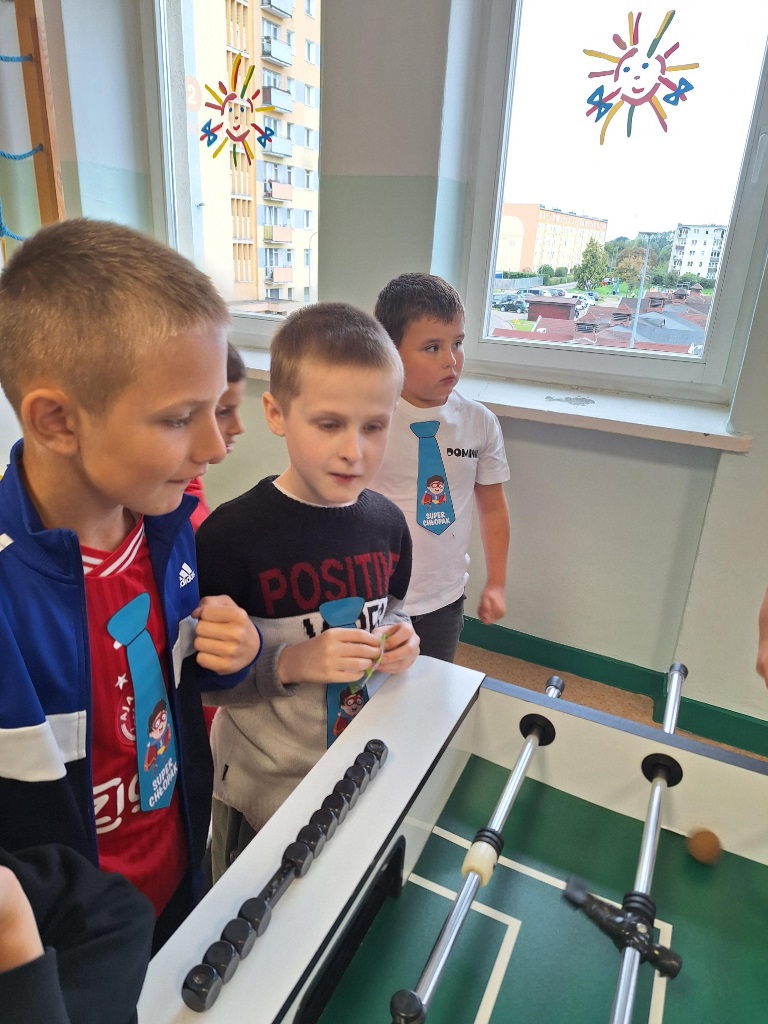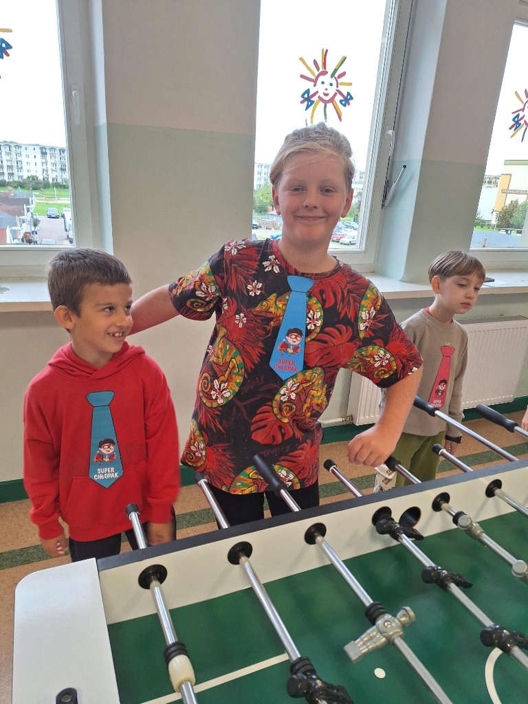 Dzień Chłopaka w świetlicy szkolnej upłynął w miłej i radosnej atmosferze. Chłopcy uczestniczyli w różnorodnych zabawach integracyjnych, między innymi rozegrany został mecz w piłkarzyki, które dostarczyły im wiele śmiechu i pozytywnej energii. W ramach świętowania Dnia Chłopaka przygotowany był również słodki poczęstunek, który wszystkim bardzo smakował. Na zakończenie dnia, każdy chłopiec otrzymał drobny upominek - krawat z napisem "Super Chłopak", który wywołał u Naszych młodych dżentelmenów wiele uśmiechów i radości.