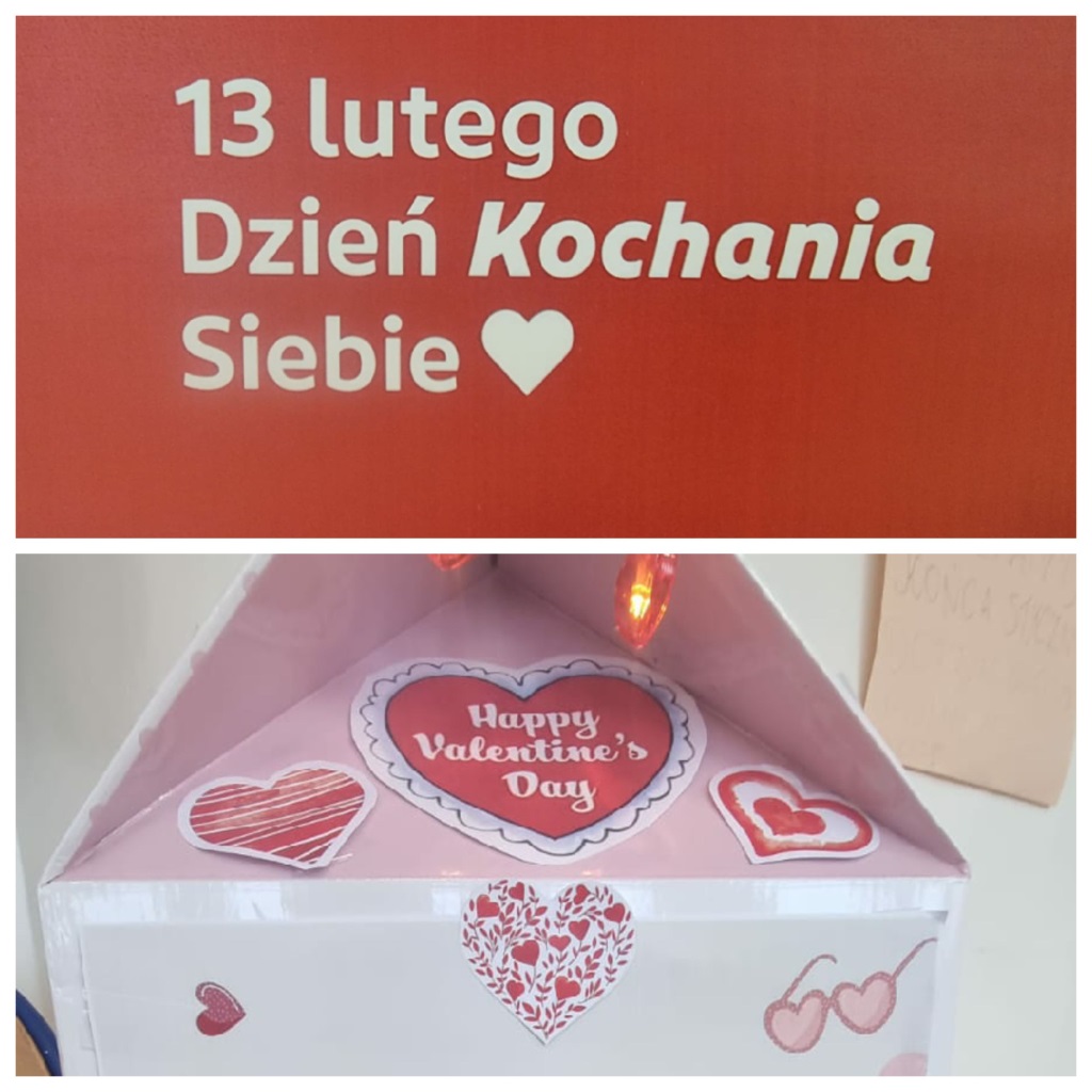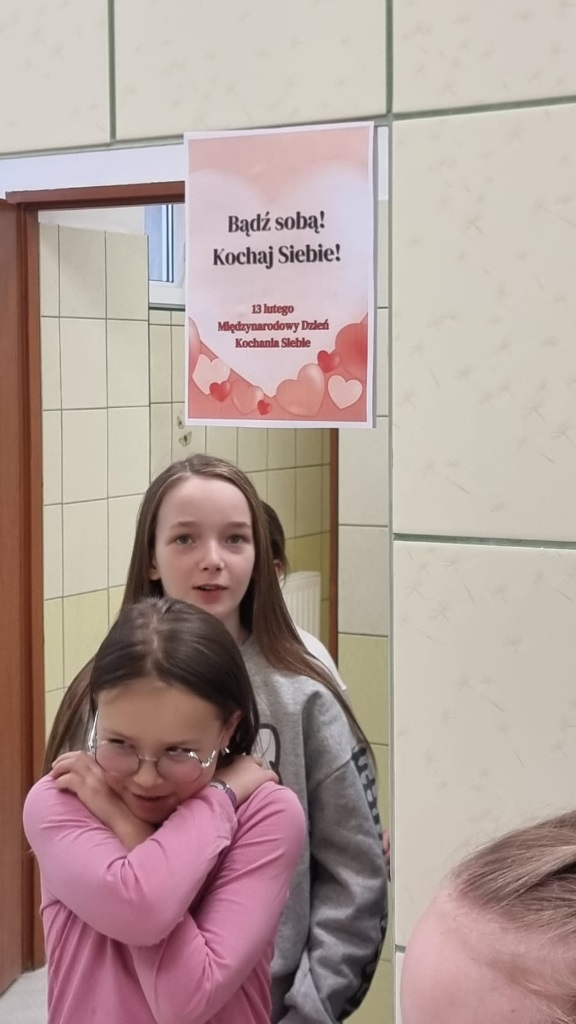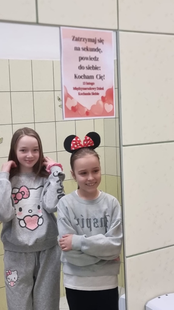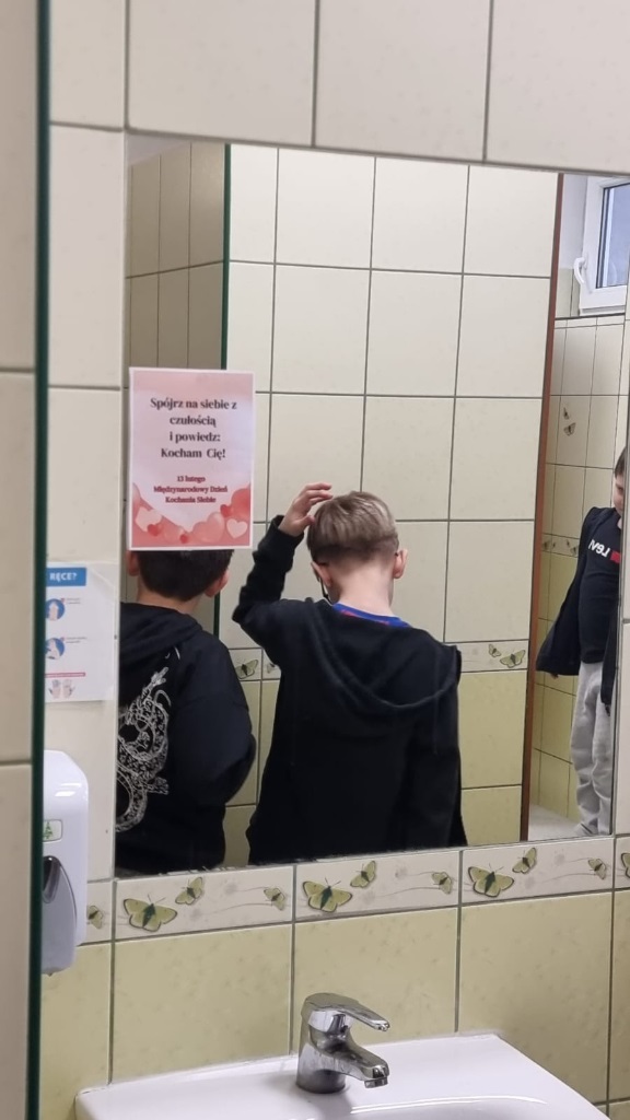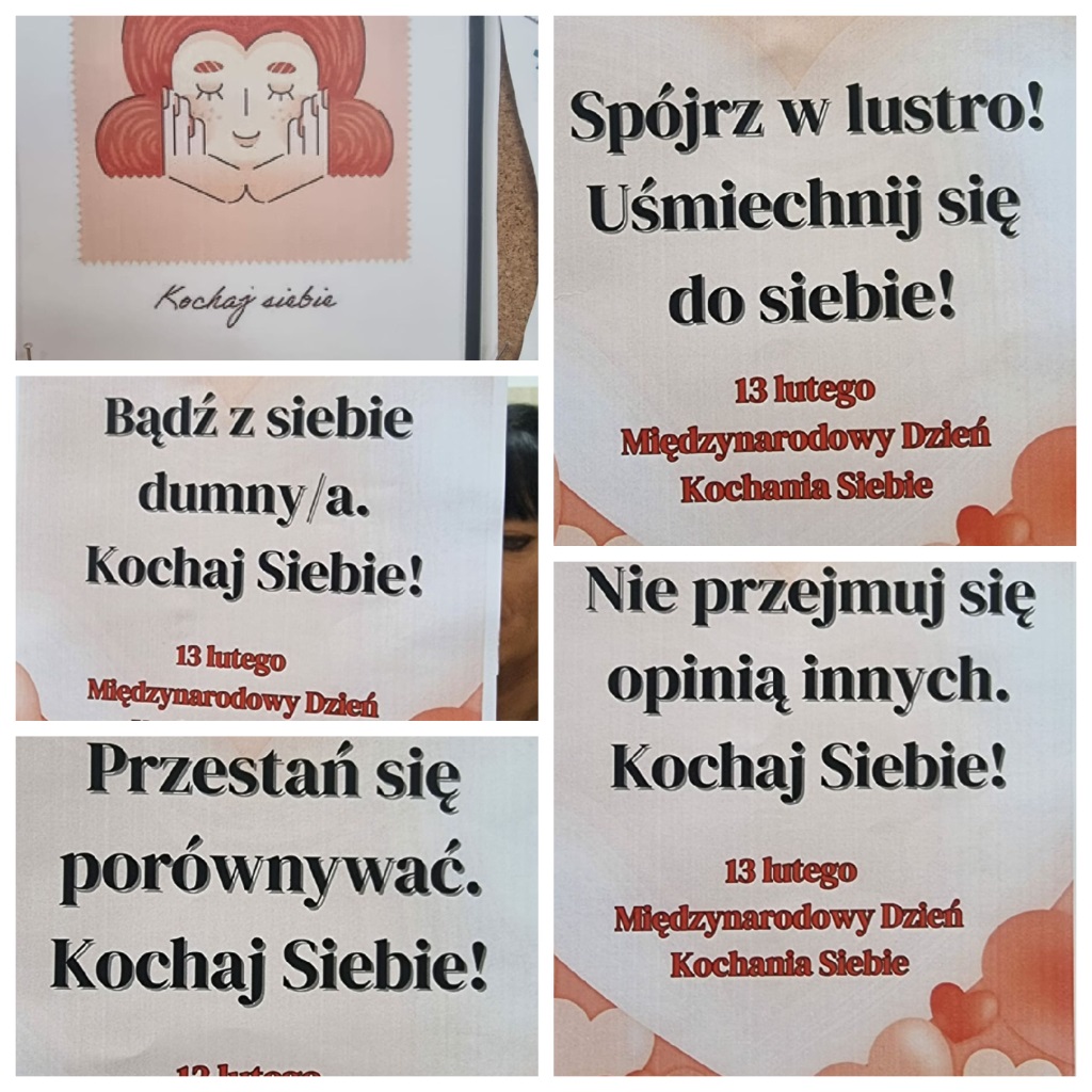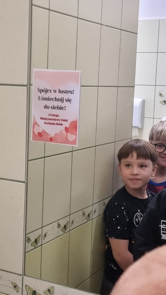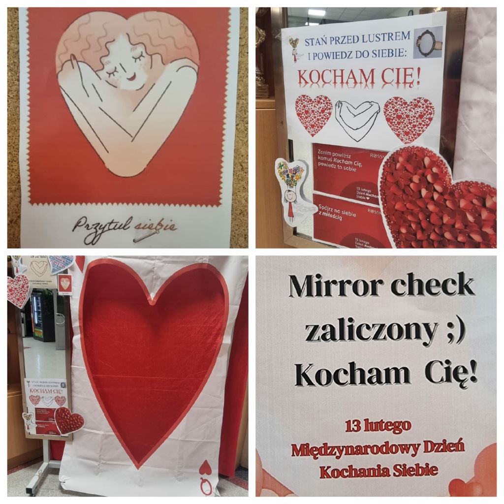 13 lutego, z okazji Dnia Kochania Siebie, na wszystkich lustrach w szkole pojawiły się kolorowe kartki z afirmującymi, pełnymi ciepła tekstami. Przy wejściu do szkoły stanęło również lustro ozdobione wielkim sercem, zachęcające do uśmiechu i spojrzenia na siebie z sympatią.