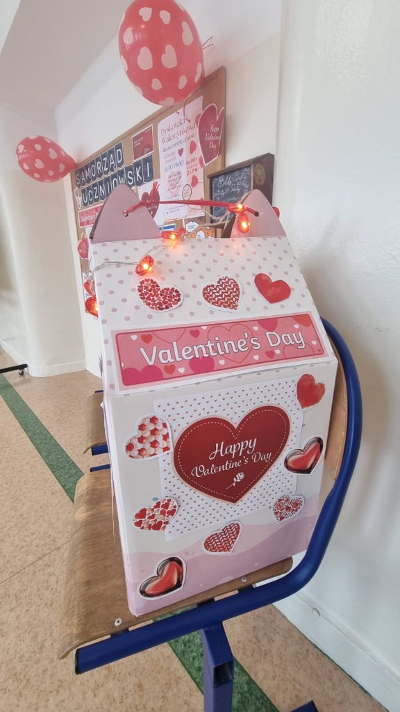 Już od tego dnia w szkole można było zauważyć walentynkowe dekoracje – czerwone serduszka, tematyczne informacje na tablicy Samorządu Uczniowskiego oraz kartki z życzeniami w języku angielskim na korytarzu III piętra. Kulminacją obchodów był poniedziałek, 16 lutego, kiedy działała poczta walentynkowa. Uczniowie chętnie przekazywali sobie miłe słowa, serdeczne pozdrowienia i wyrazy sympatii.