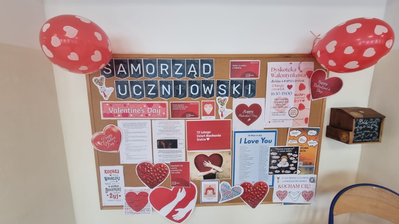W dniach 13–16 lutego w naszej szkole panowała wyjątkowo serdeczna atmosfera. Wszystko za sprawą Samorządu Uczniowskiego, który przygotował dla społeczności szkolnej piękne inicjatywy związane z Dniem Kochania Siebie oraz Walentynkami.