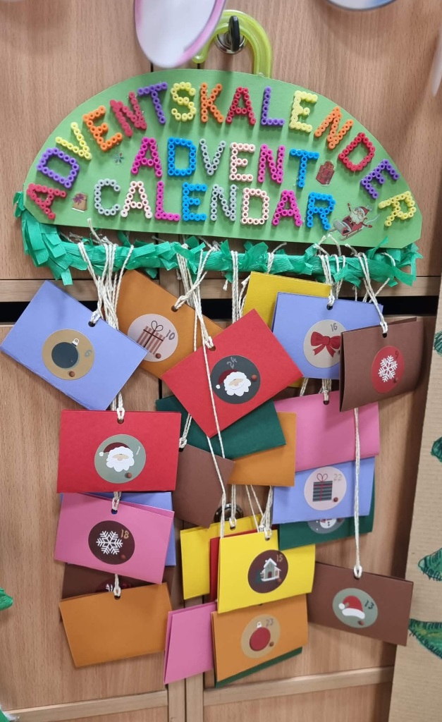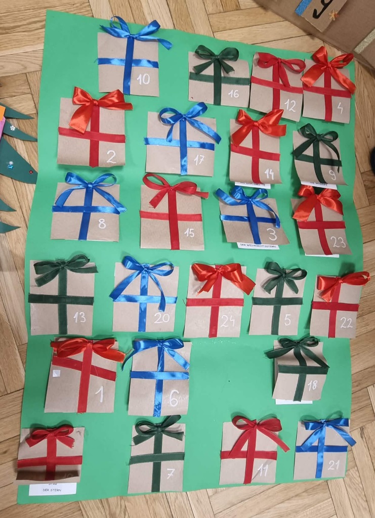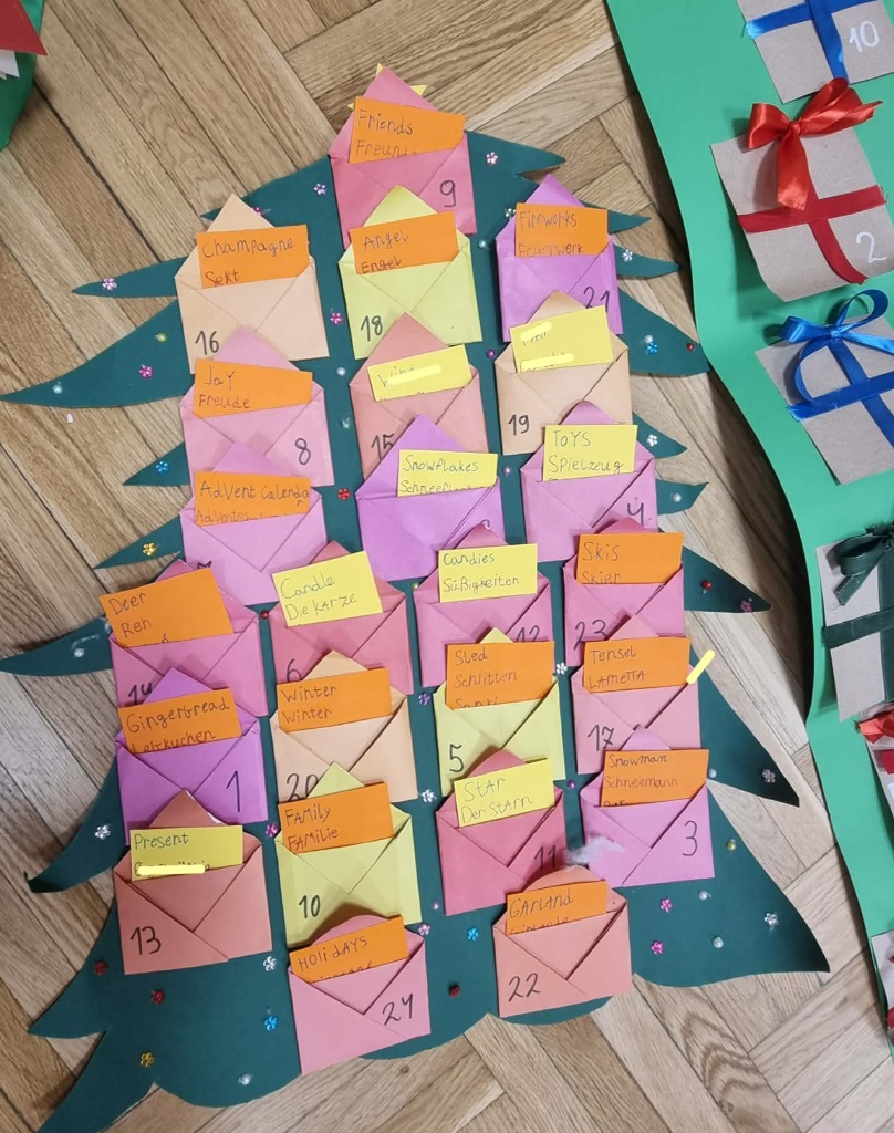 Uczniowie mieli za zadanie przygotować własny kalendarz adwentowy zawierający angielskie i niemieckie słownictwo związane ze Świętami Bożego Narodzenia.