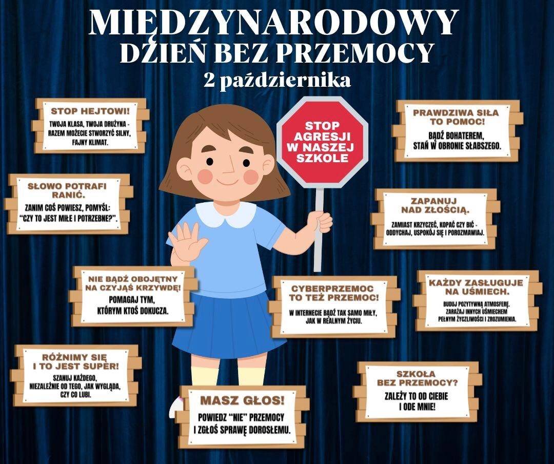 Z okazji Międzynarodowego Dnia Bez Przemocy, przypadającego 2 października, uczniowie klasy 7a już tydzień wcześniej, podczas godziny wychowawczej, zaangażowali się w ważne i poruszające zajęcia poświęcone przeciwdziałaniu przemocy, hejtowi oraz mowie nienawiści.