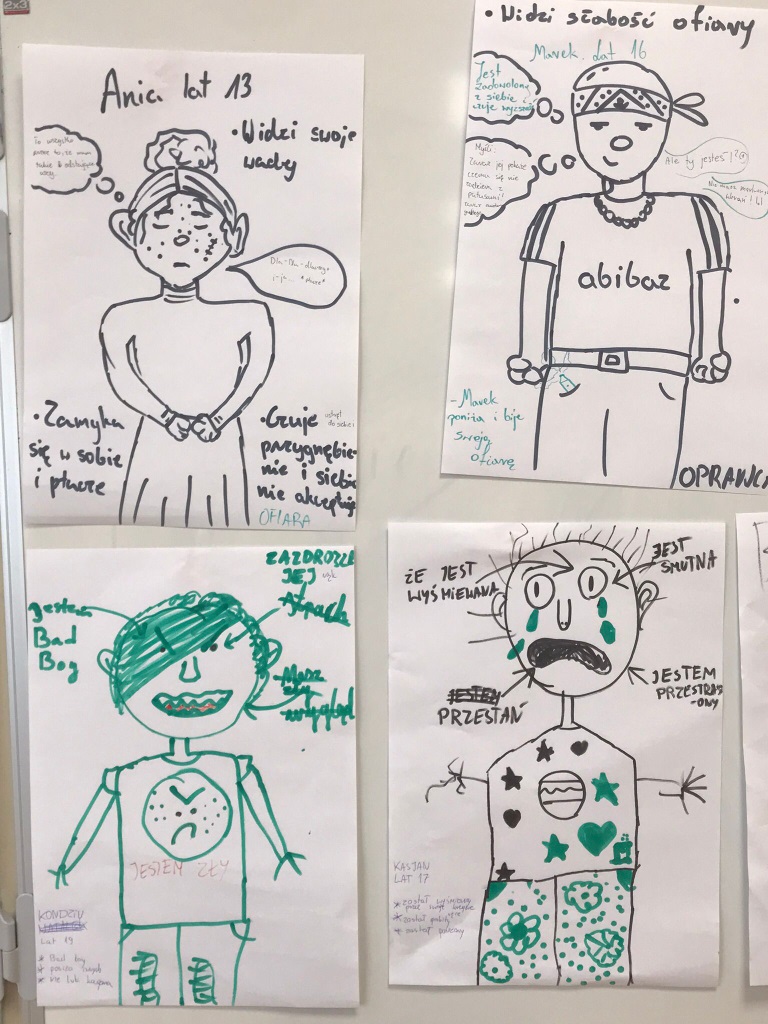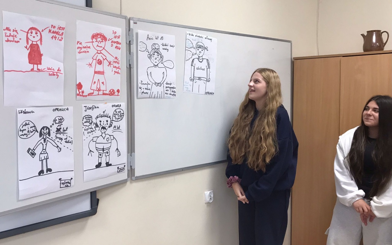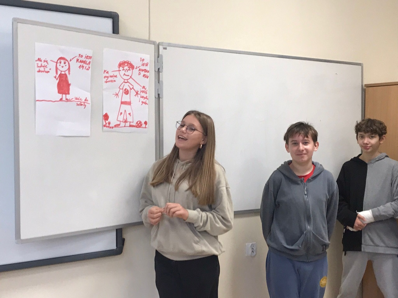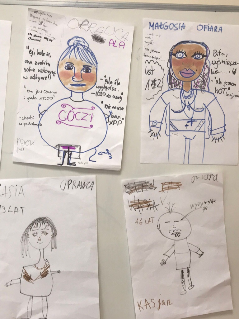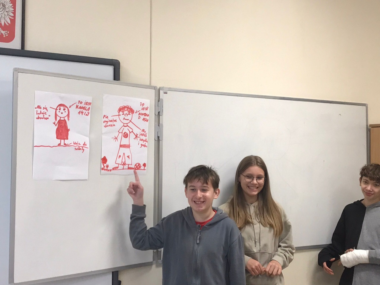 W trakcie zajęć uczniowie wspólnie zastanawiali się nad mechanizmami przemocy i jej skutkami. W ramach ćwiczeń tworzyli postacie – ofiary i oprawcy – analizując ich emocje, motywacje oraz działania. Dzięki temu mogli lepiej zrozumieć, jak różne są perspektywy i jak ważna jest empatia w codziennych relacjach międzyludzkich.