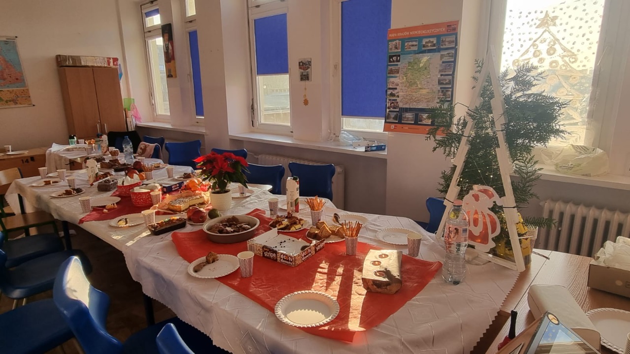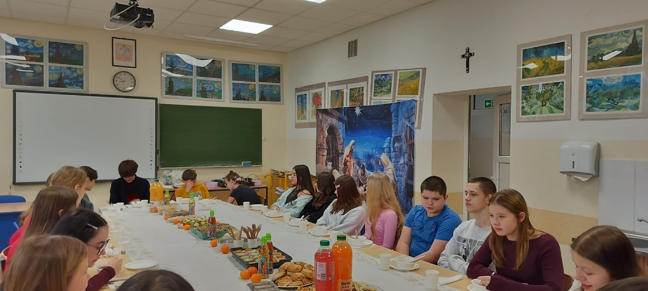 19 grudnia w naszej szkole odbyły się wigilie klasowe, które wprowadziły wszystkich w wyjątkowy, świąteczny nastrój. Sale lekcyjne zostały pięknie udekorowane, a stoły wypełniły się tradycyjnymi potrawami przygotowanymi przez uczniów oraz ich rodziców.