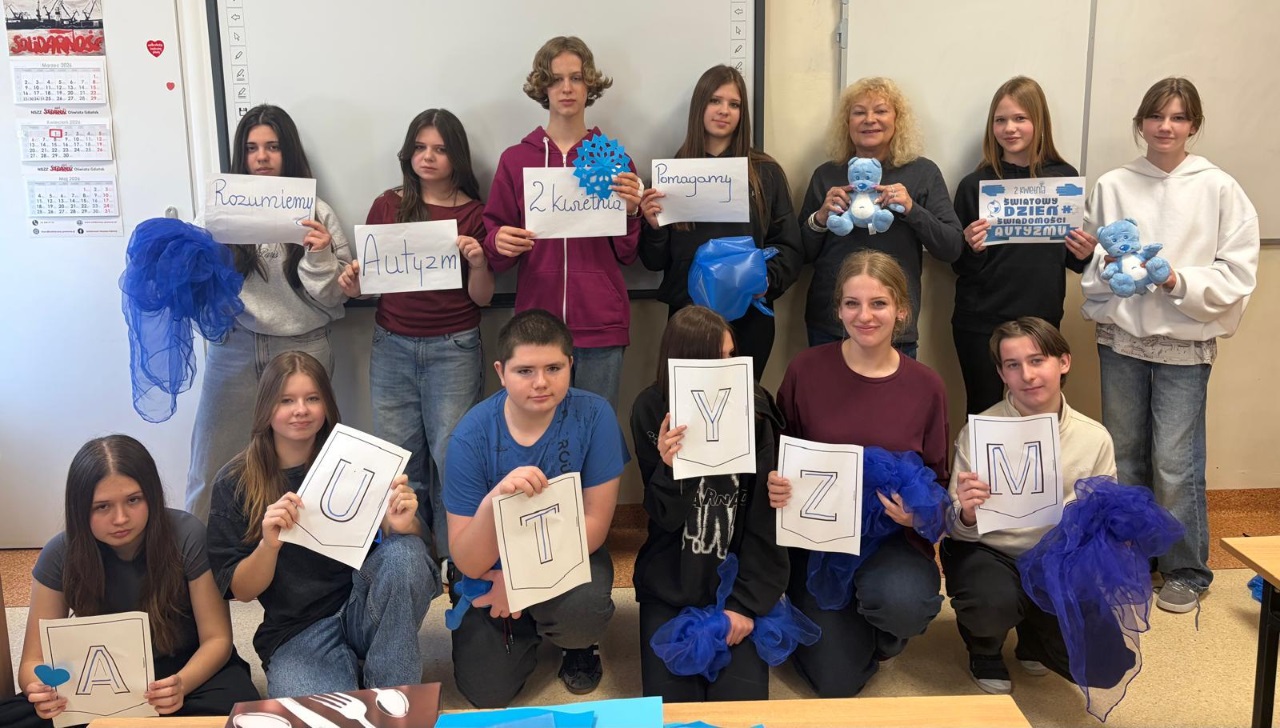 2 kwietnia obchodzony jest Światowy Dzień Świadomości Autyzmu. Brak zrozumienia i niewłaściwa interpretacja pewnych specyficznych zachowań dzieci, młodzieży i osób dorosłych ze spektrum autyzmu, mogą prowadzić do stygmatyzacji i wykluczenia, dlatego w szkołach z tej okazji realizowane są zajęcia uświadamiające i przybliżające zagadnienia "Świata osób ze spektrum autyzmu". W naszej szkole takie zajęcia zostały przeprowadzone w klasie 6 a, 7a i 8 b. Poznaliśmy główne symptomy zachowań i profilaktyczne sposoby oddziaływań terapeutycznych. Znamienne stały się dla nas sformułowania "Wiemy- Wspieramy- Wspomagamy- Rozumiemy". Symbolami autyzmu są motyl i kolor niebieski.