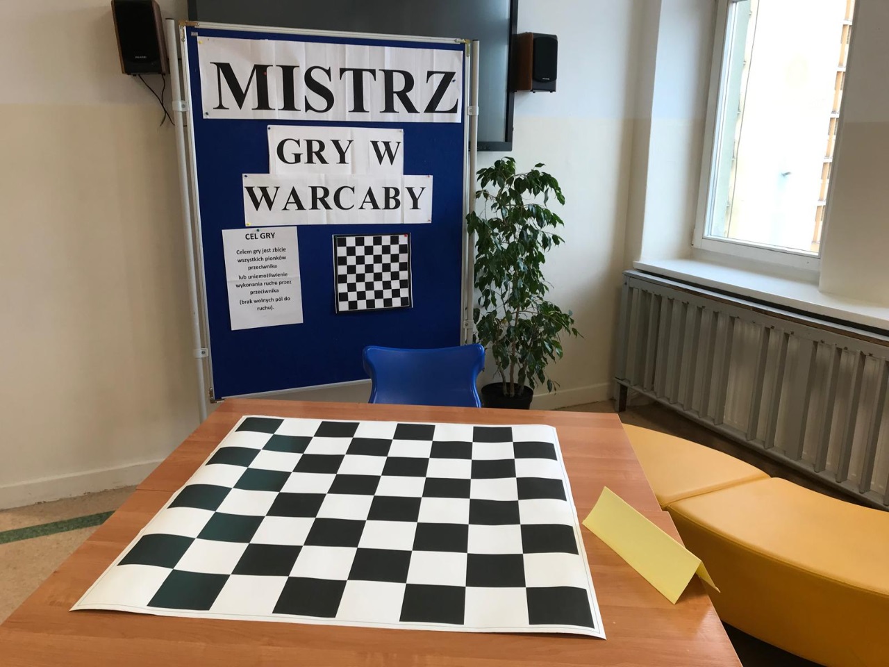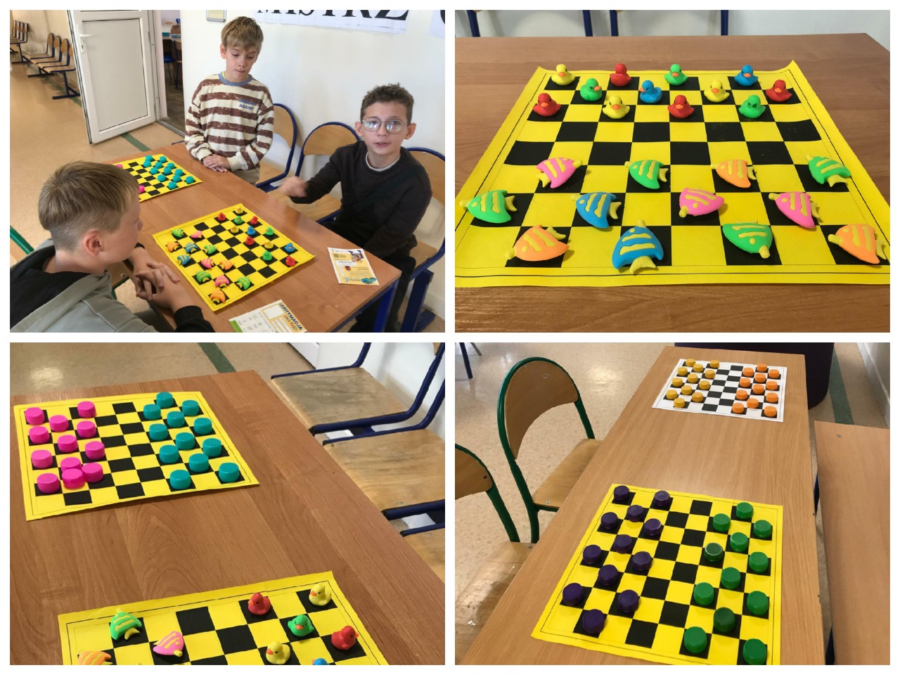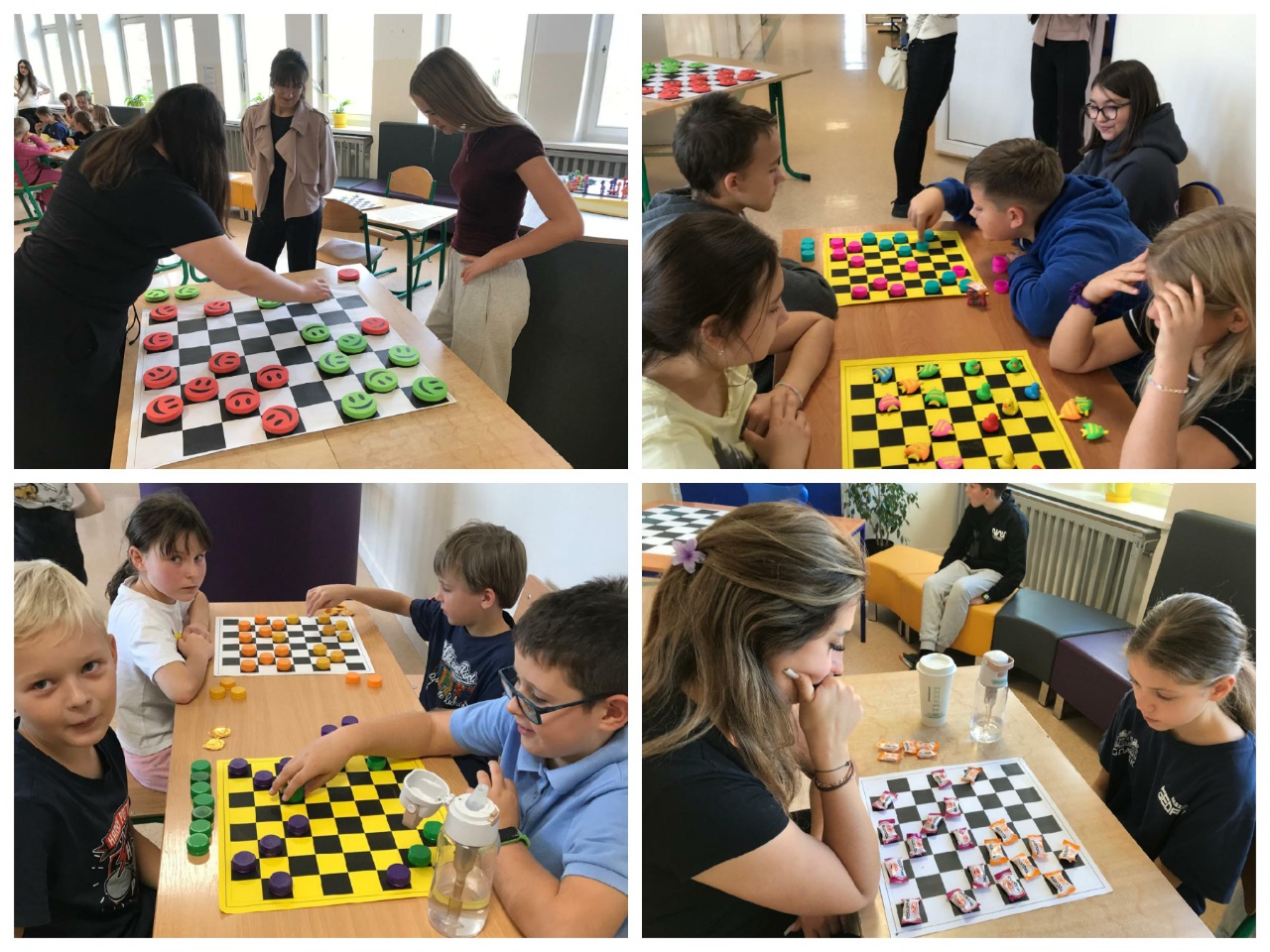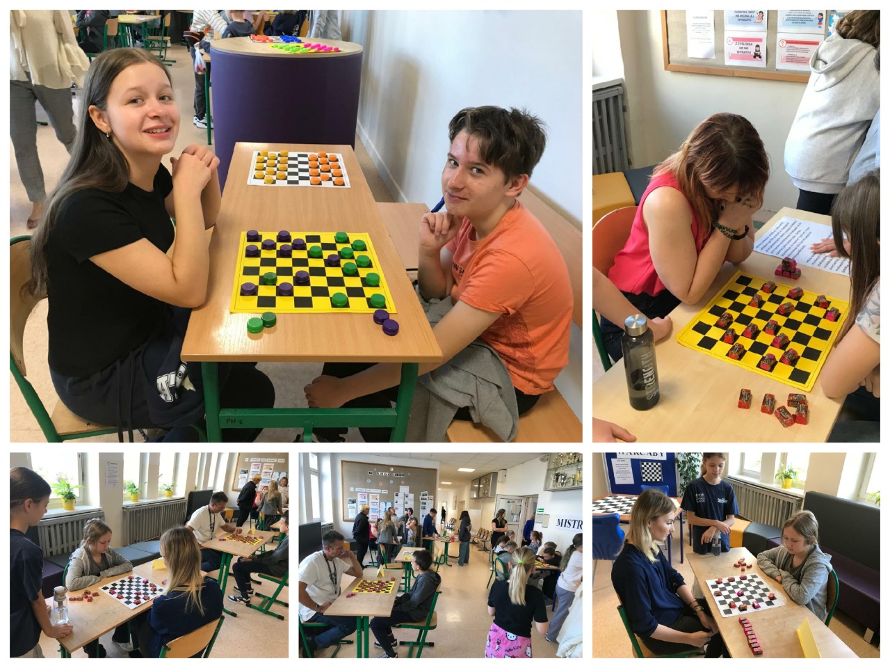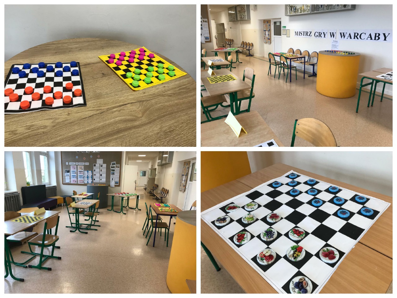 14 października zorganizowany został turniej "Mistrz Gry w Warcaby". Warcaby zawsze cieszyły się ogromnym powodzeniem wśród gier planszowych, ponieważ rozwijają umiejętność taktyki, przewidywania ruchów i ćwiczą koordynację. Tym razem zawodnikami byli uczniowie- Michał, Bianka, Julia i Michał z klas 6 oraz nauczyciele -Pani Violetta, Dorota, Klaudia i Pan Grzegorz – wzięli oni udział w rozgrywkach w dniu swojego święta. Turniej został rozegrany w czterech grupach, a głównymi pionkami były cukierki. Warto było więc o nie walczyć. Do półfinału zakwalifikowały się Panie Violetta i Dorota oraz Michał i Julia. Po rozegraniu partii, zwyciężyły Panie -Violetta i Dorota, i rywalizowały ze sobą o tytuł "Mistrza Gry w Warcaby". Walka trwała do samego końca. Ostatecznie "Mistrzynią Warcabów" została Pani Violetta, której serdecznie gratulujemy. Mistrzyni swoje zdobyte pionki -cukierki rozdała kibicom. Było słodko i wesoło. Kibice wtórując turniejowi rozgrywali też swoje partie z różnymi wynikami. Zobaczcie zresztą, jak to wyglądało w fotograficznym skrócie.