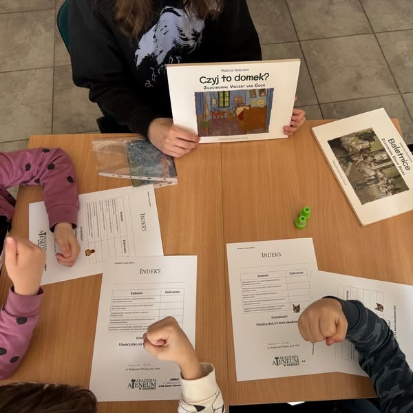 W świetlicy odbyły się zajęcia zachęcające młodsze dzieci do pokonywania trudności w czytaniu i zaprzyjaźnieniu się z książką. Dzieciom przybliżona została postać Hansa Christiana Andersena jako sławnej osoby z dysleksją. Poznały również zabawy przygotowujące oczy do czytania.