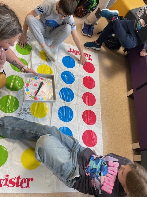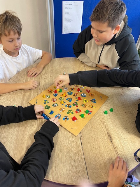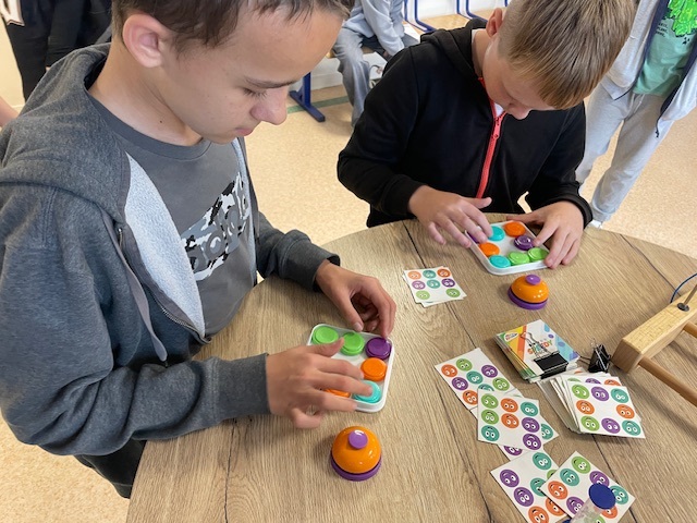 Na korytarzu 3 piętra uczniowie klas 4-8 podczas długich przerw mogli spędzić czas grając w gry i wykonując ćwiczenia doskonalące funkcje uczestniczące w czytaniu i pisaniu.