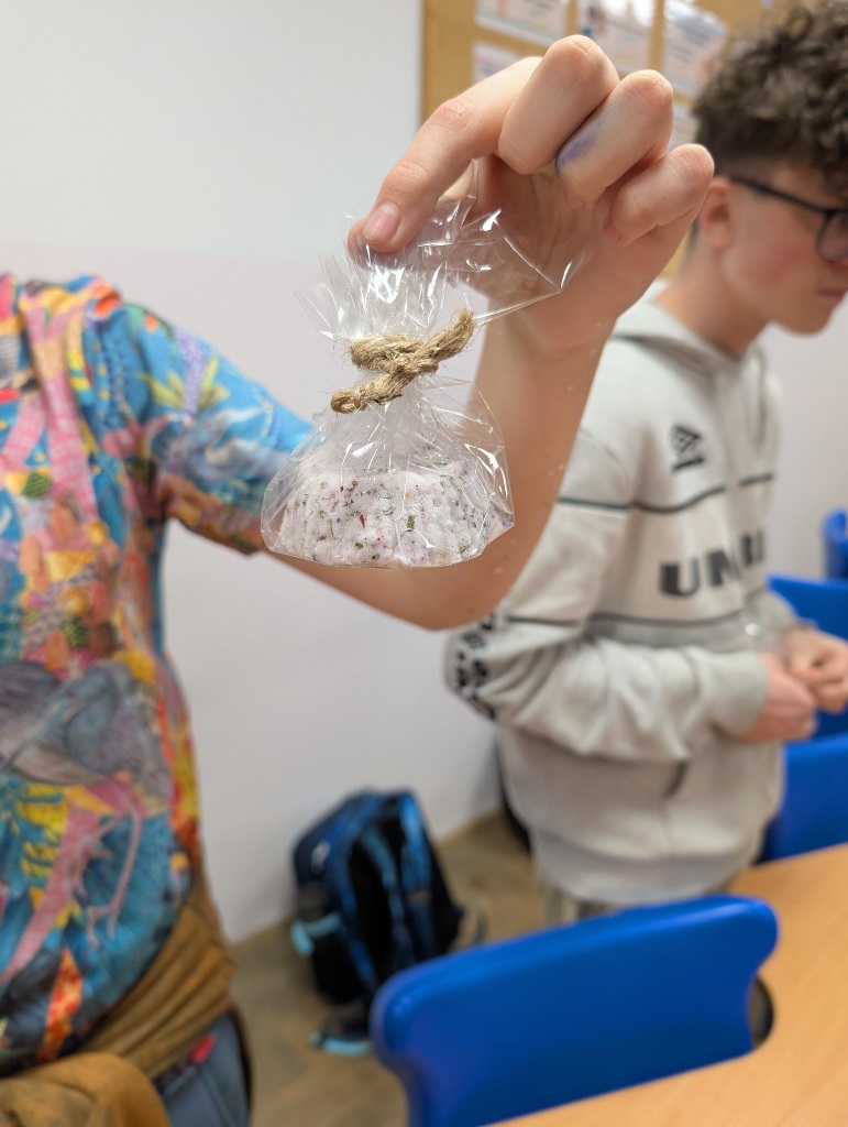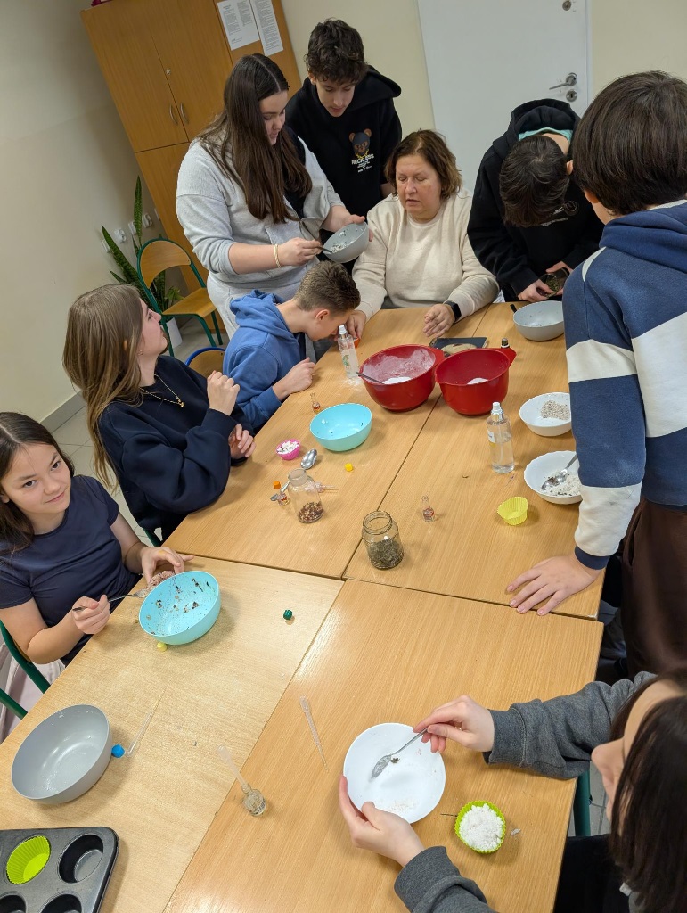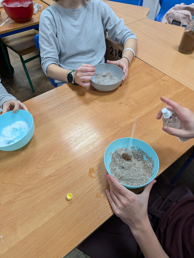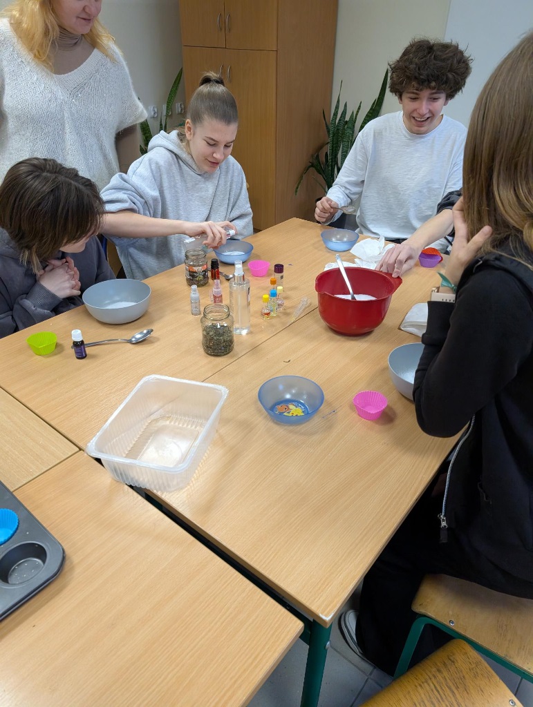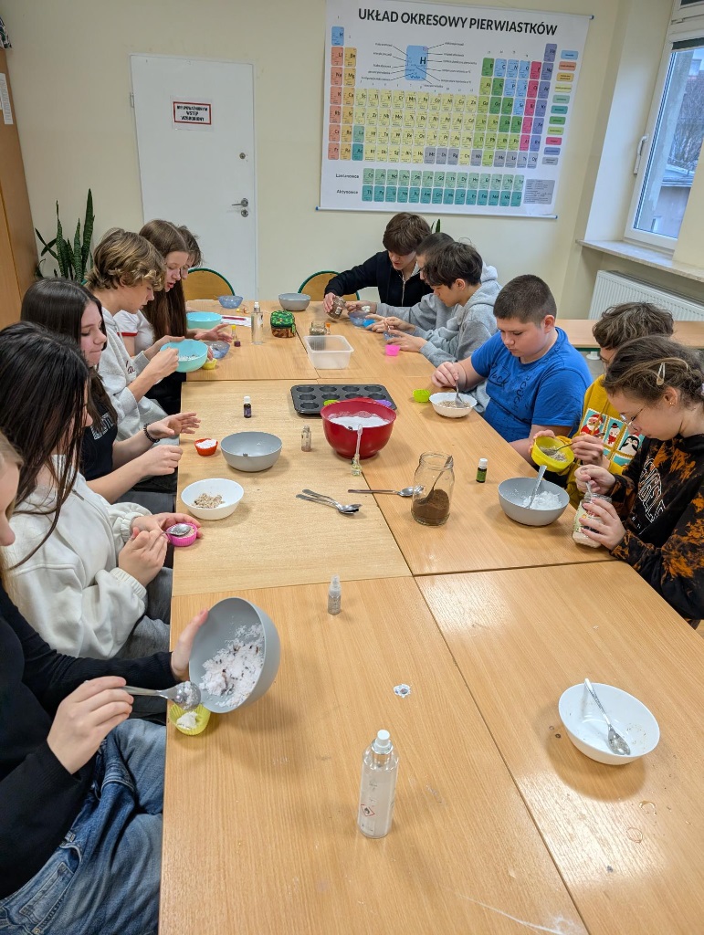Święta kojarzą się nam z zapachem cynamonu, choinki czy mandarynek. Na przedświątecznych lekcjach chemii również postawiliśmy na moc zapachów - tworzyliśmy własne kule do kąpieli.